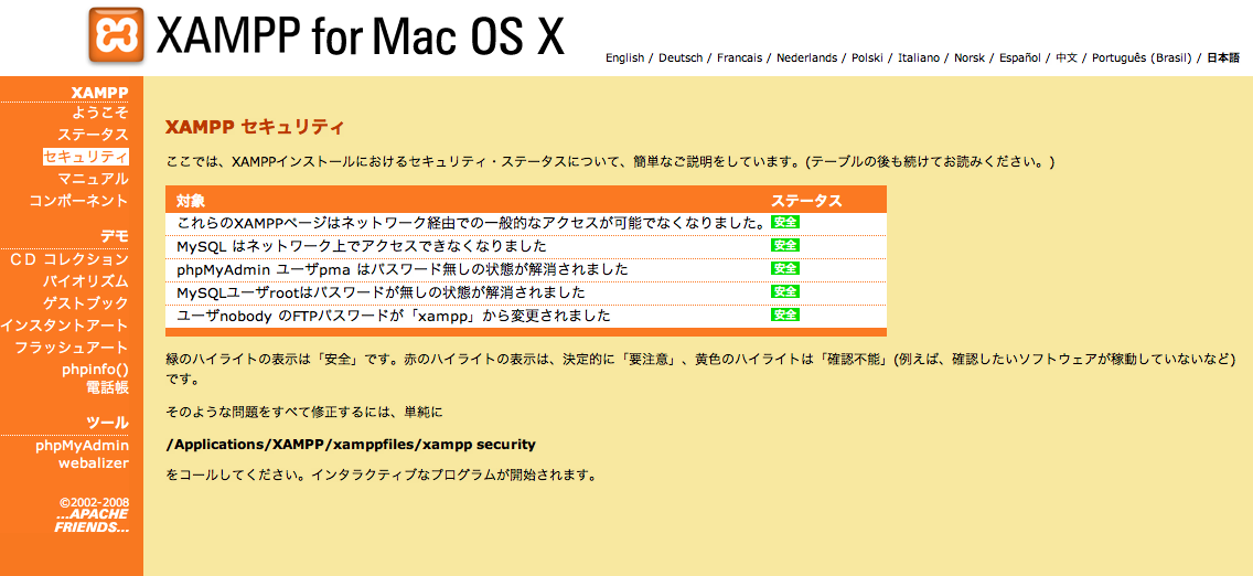 XAMPP for Mac OS X ダウンロード、インストールは問題ないですね!